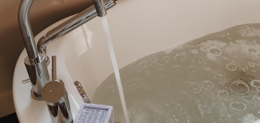 1- Détendez-vous dans un bain chaud ou sous une douche bien chaude, afin d’ouvrir vos pores de peau.