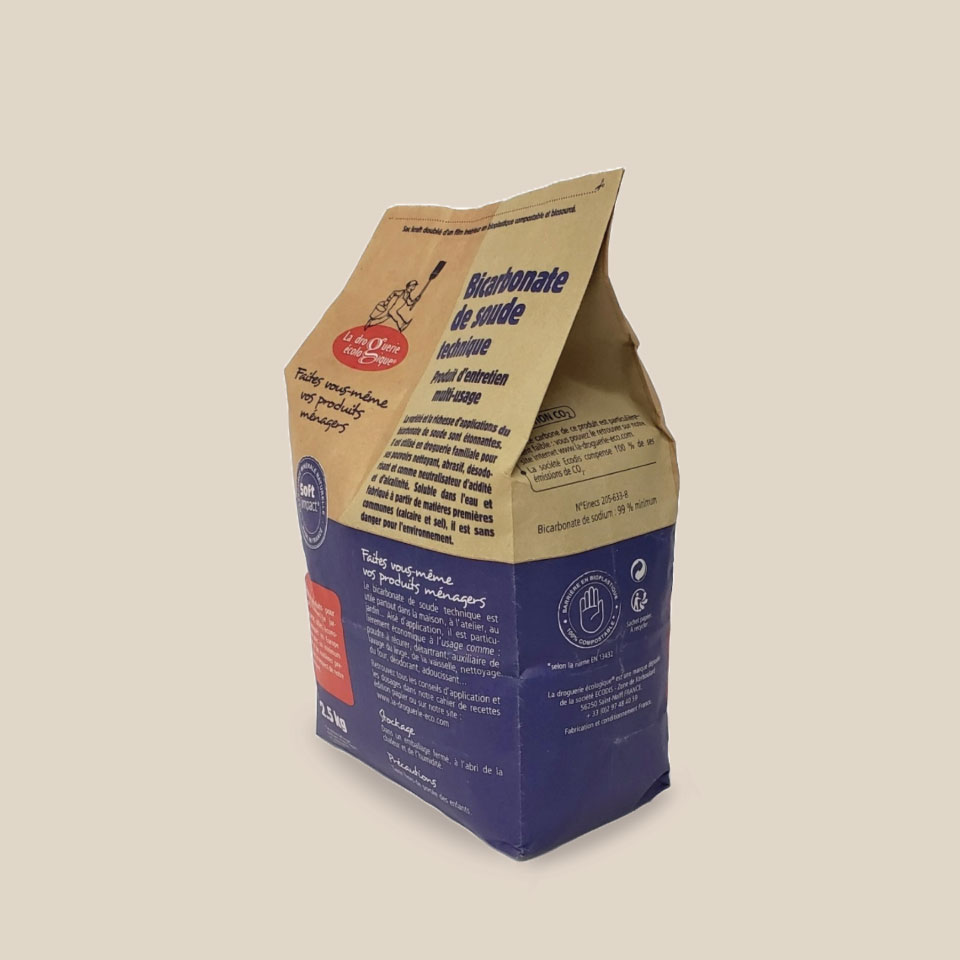 Its fine, white powder, of mineral origin, is made in France from natural raw materials (chalk and salt).