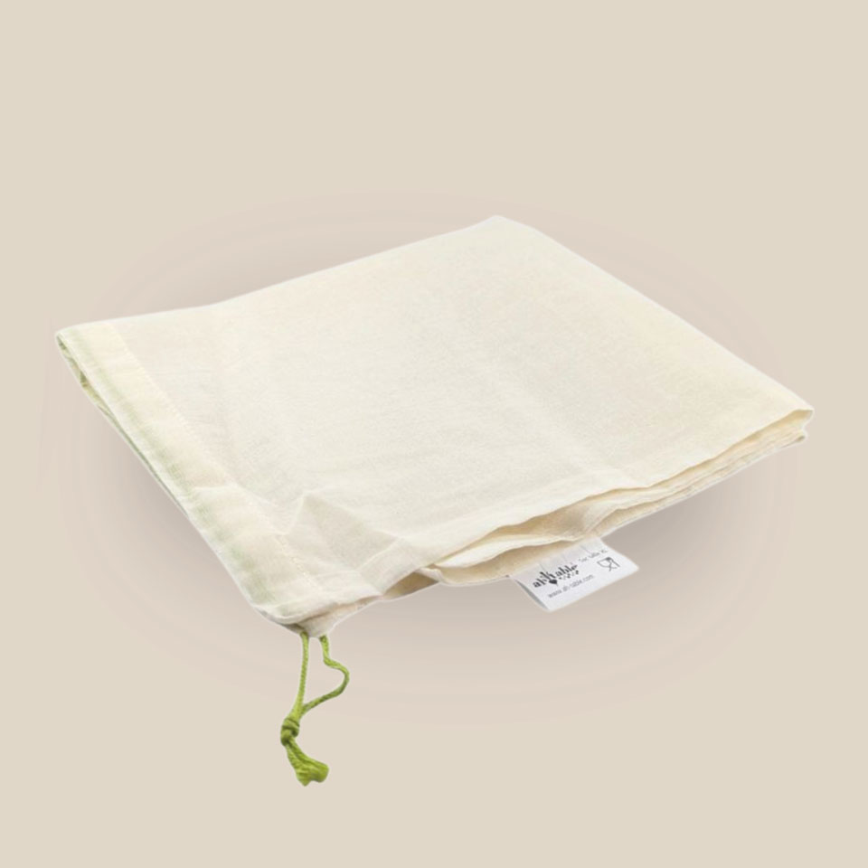 Practical, reusable, and eco-friendly, this organic cotton bag is ideal for carrying or storing your bulk food: fruits, vegetables, grains, nuts, legumes, etc.