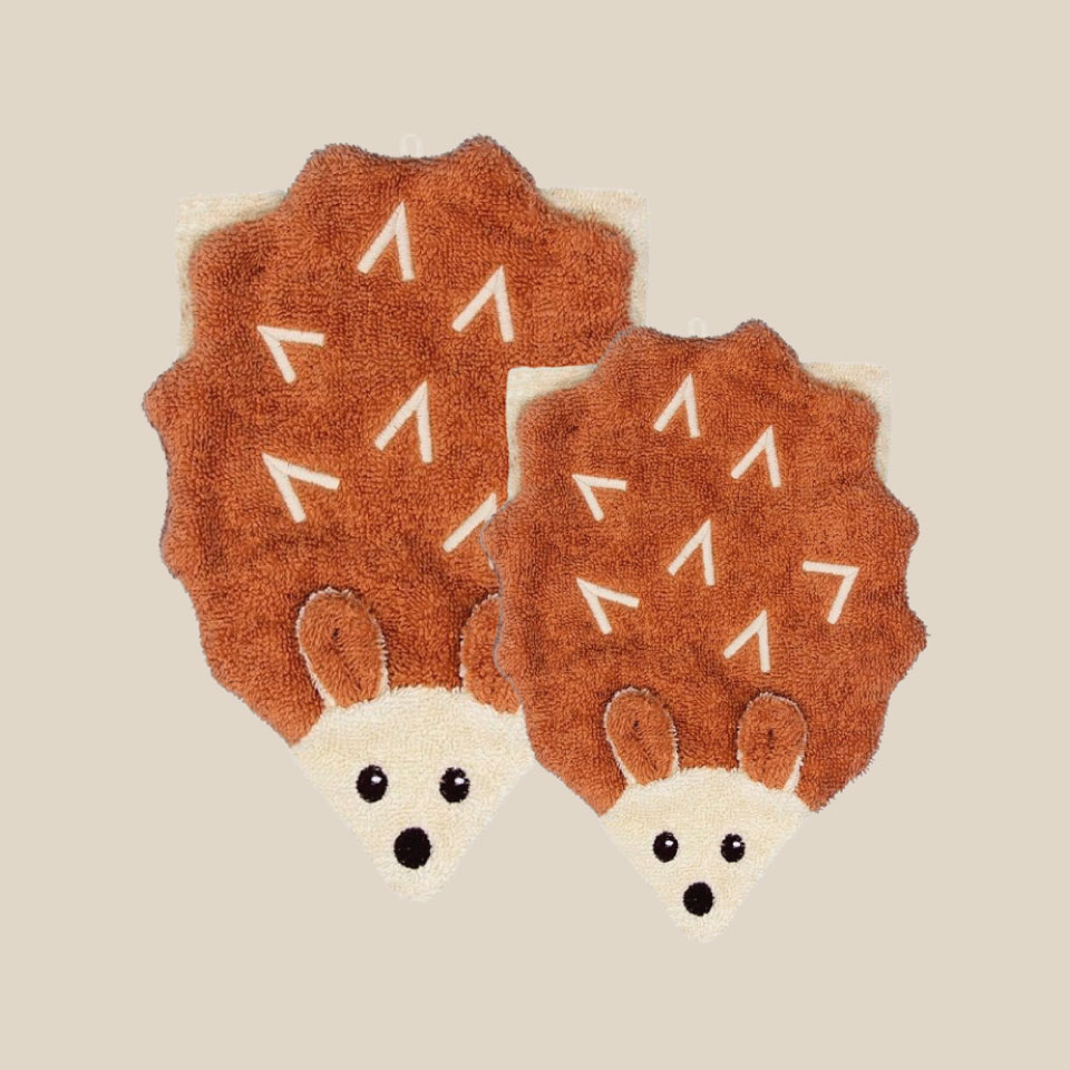With its soft little spikes and curious look, this little hedgehog invites you to discover it with tenderness. Slip your hands into the washcloth and bring this mischievous companion to life: bath time becomes a moment of complicity and play with your child.