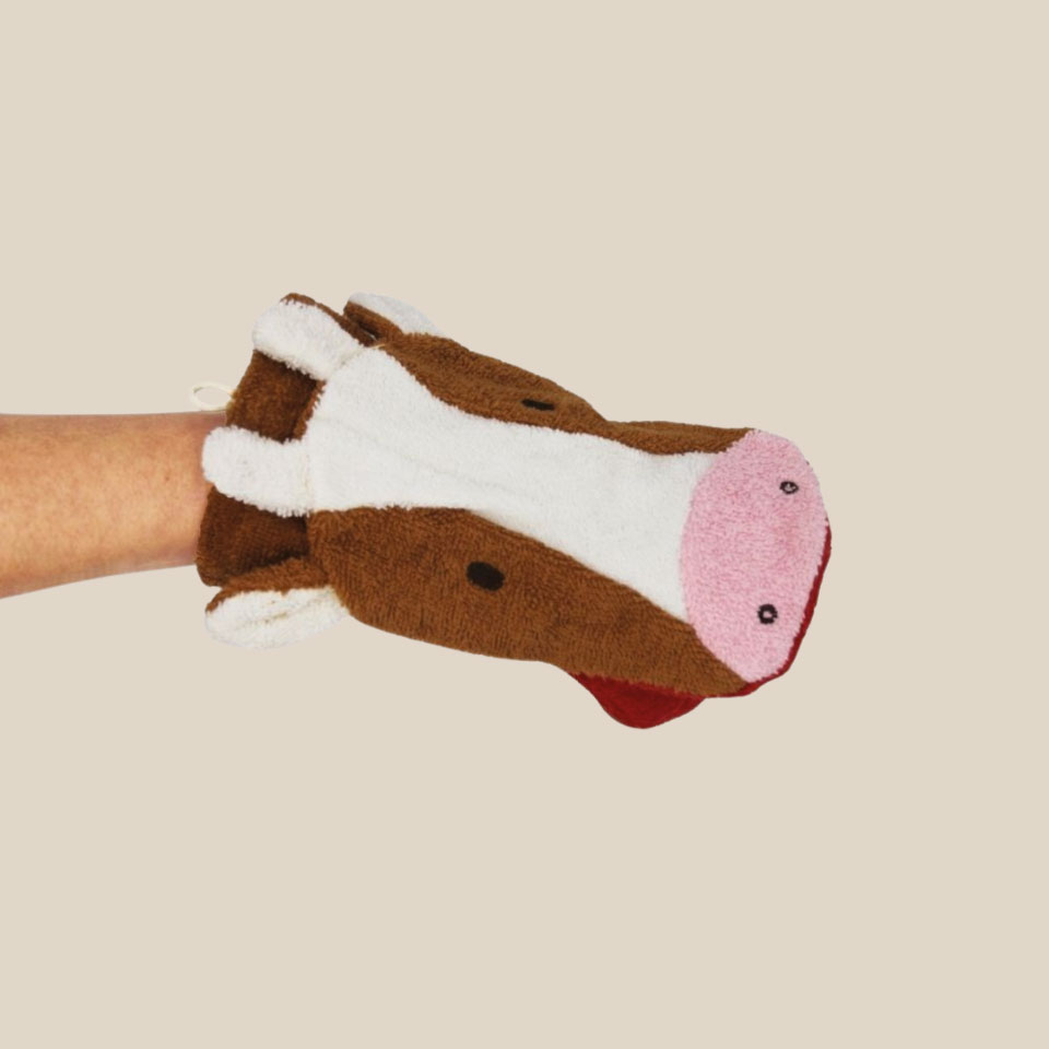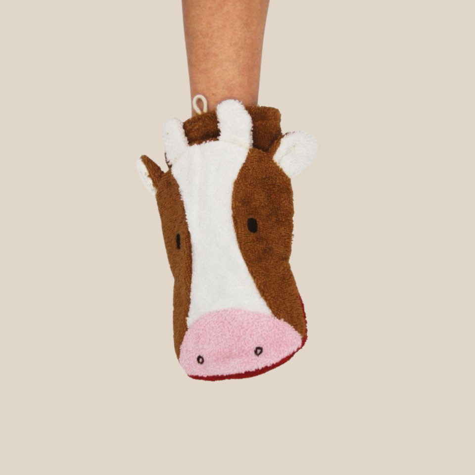 With her warm brown coat and gentle gaze, this peaceful and endearing brown cow invites gentleness and complicity. Slip your hands into the washcloth and bring this rustic companion to life: bath time becomes a moment of pleasure and tenderness to share with your child.