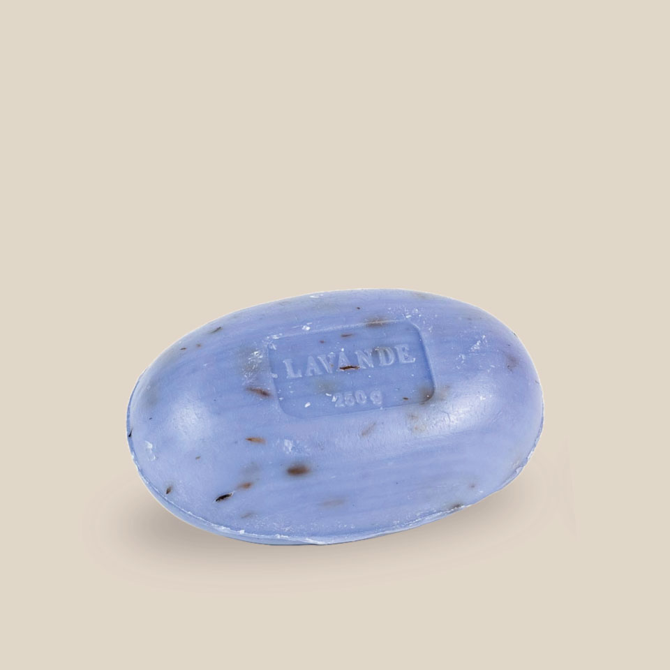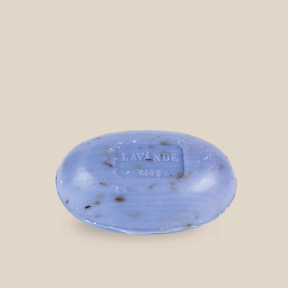 Discover the 250g Oval Marseille Soap with crushed lavender from La Savonnerie La Licorne, an authentic soap made using traditional French know-how.