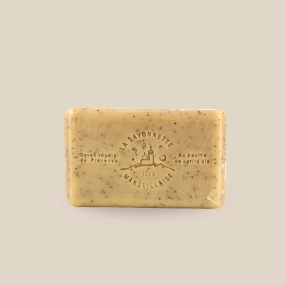 Composition : Sodium palmate, sodium palm kernelate, aqua (water), parfum (fragrance), palm kernel acid, prunus armeniaca seed powder, sodium chloride, glycerin, butyrospermum parkii (shea) butter*, tetrasodium EDTA, tetrasodium etidronate, alpha-isomethyl ionone, limonene, geraniol, linalool, CI 11680,CI 12085