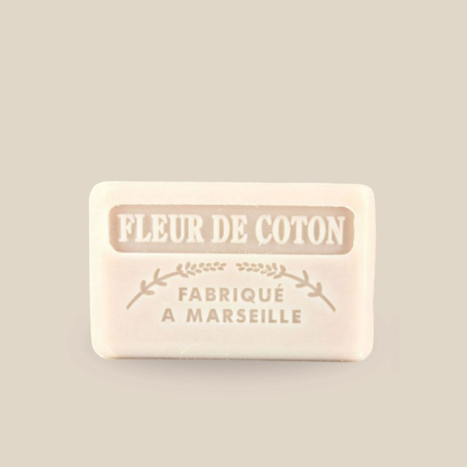 Savon artisanal parfumé à la Fleur de Coton. Fabriqué artisanalement à Marseille.