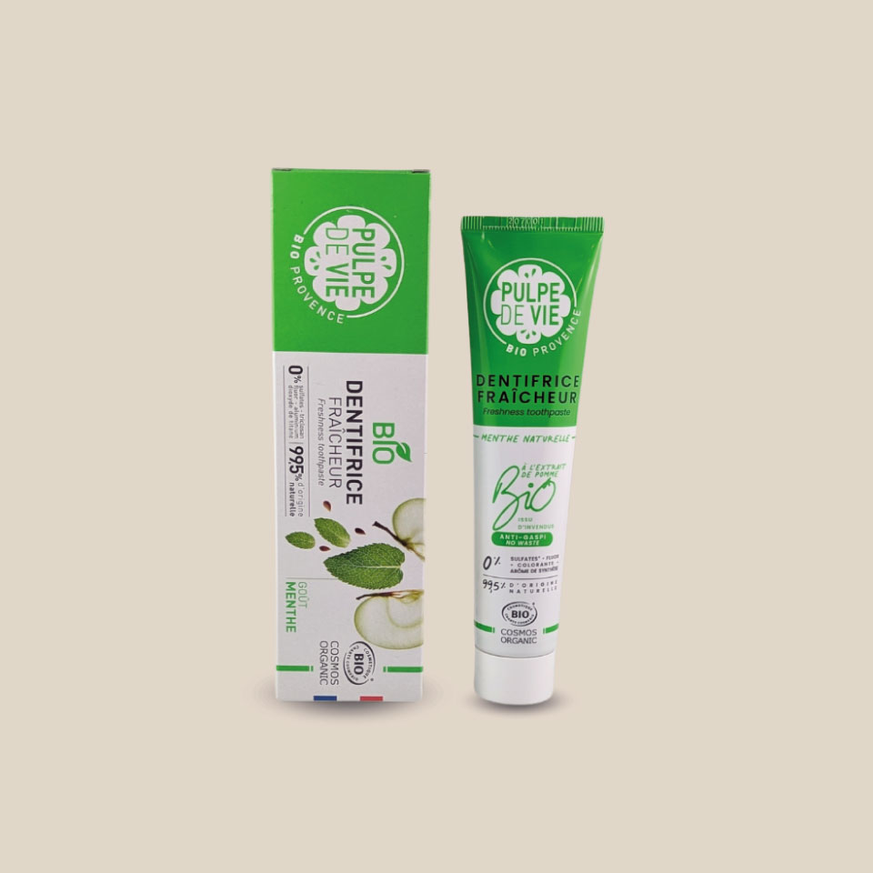 Au goût frais de menthe, le dentifrice est débarrassé de toute substance controversée : il est sans sulfates, sans dioxyde de titane, sans triclosan, sans aluminium, sans PEG, sans parabène, sans propylène glycol.