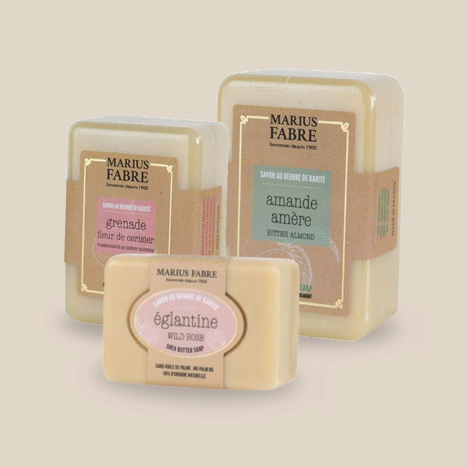 - Églantine : Sodium Olivate, Sodium Cocoate, Sodium Sunflowerseedate, Aqua, Glycerin, Parfum, Butyrospermum Parkii Butter, Sodium Chloride, Sodium Hydroxide, Tetrasodium Glutamate Diacetate, Citronellol, Geraniol, Hydroxycitronella.